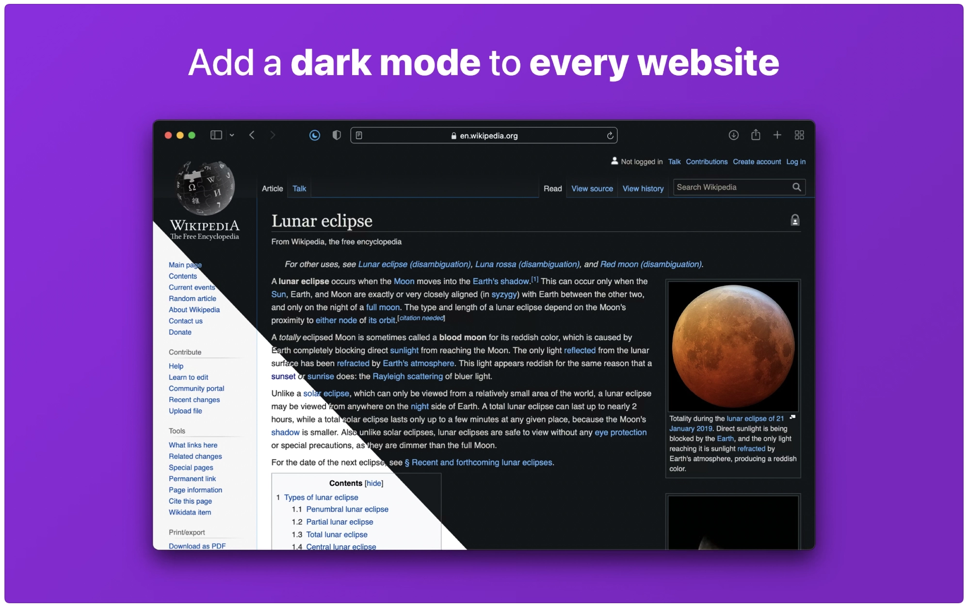 Noir 是一款 Safari 扩展程序,可自动为您访问的每个网站添加深色模式。