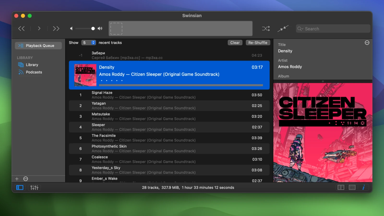 Swinsian 是一款专业Mac音乐播放器,Swinsian可以管理自己的音频文件,可以自己根据自己的浏览方式浏览自己的音频文件,这款软件要比iTunes好用的多,不需要那么繁琐的操作,还可以通过这款软件下载文件到移动设备。